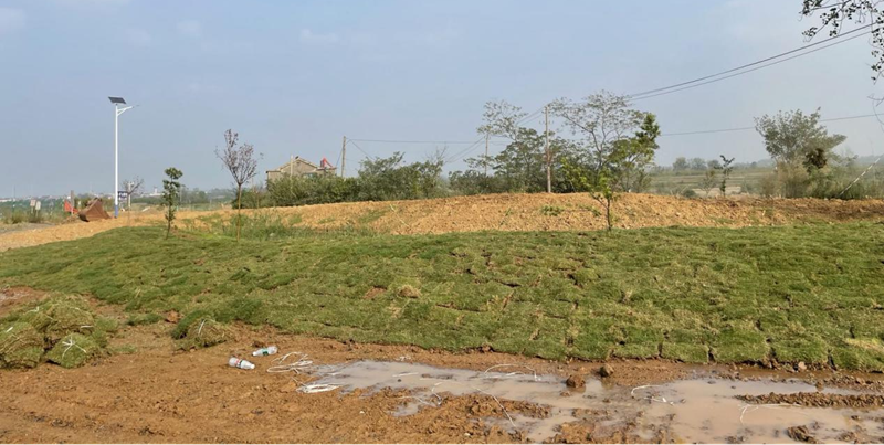 9月30日,公司員工為礦區(qū)鋪上了一層厚實的草皮。在大家辛勤汗水的澆灌下,短短數月之內,綠色就已經成為這片土地上最耀眼的顏色。