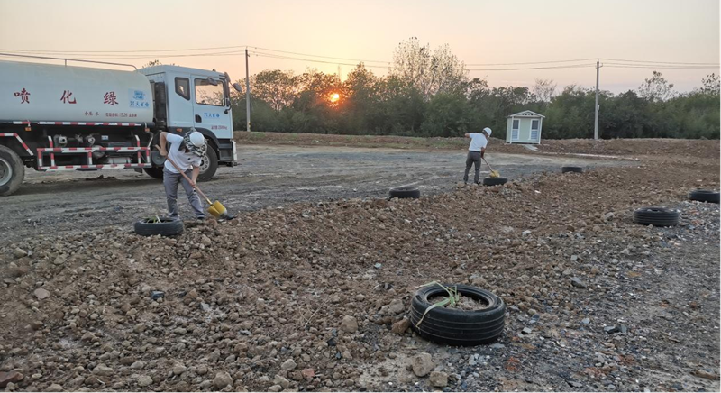 在具備種植條件后,公司陸續(xù)開展移栽樹木、種植花草、澆水養(yǎng)護等工作。經過一個多月的努力,原本荒蕪的礦區(qū)已經悄然發(fā)生變化,路邊播撒的草種和格?;ǘ家寻l(fā)了芽。放眼望去,一抹抹淡綠色生機盎然。